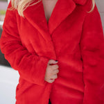 Wrap yourself in holiday glamour with this stunning red fur coat! Perfect for turning heads at festive gatherings, this luxe piece combines warmth with undeniable style. The rich crimson hue makes a bold statement, while the plush fur texture adds that touch of elegance every wardrobe deserves. Whether you're heading to a winter celebration or simply want to feel fabulous, this coat delivers cozy comfort without compromising on chic. Your go-to layer for making a memorable entrance!