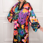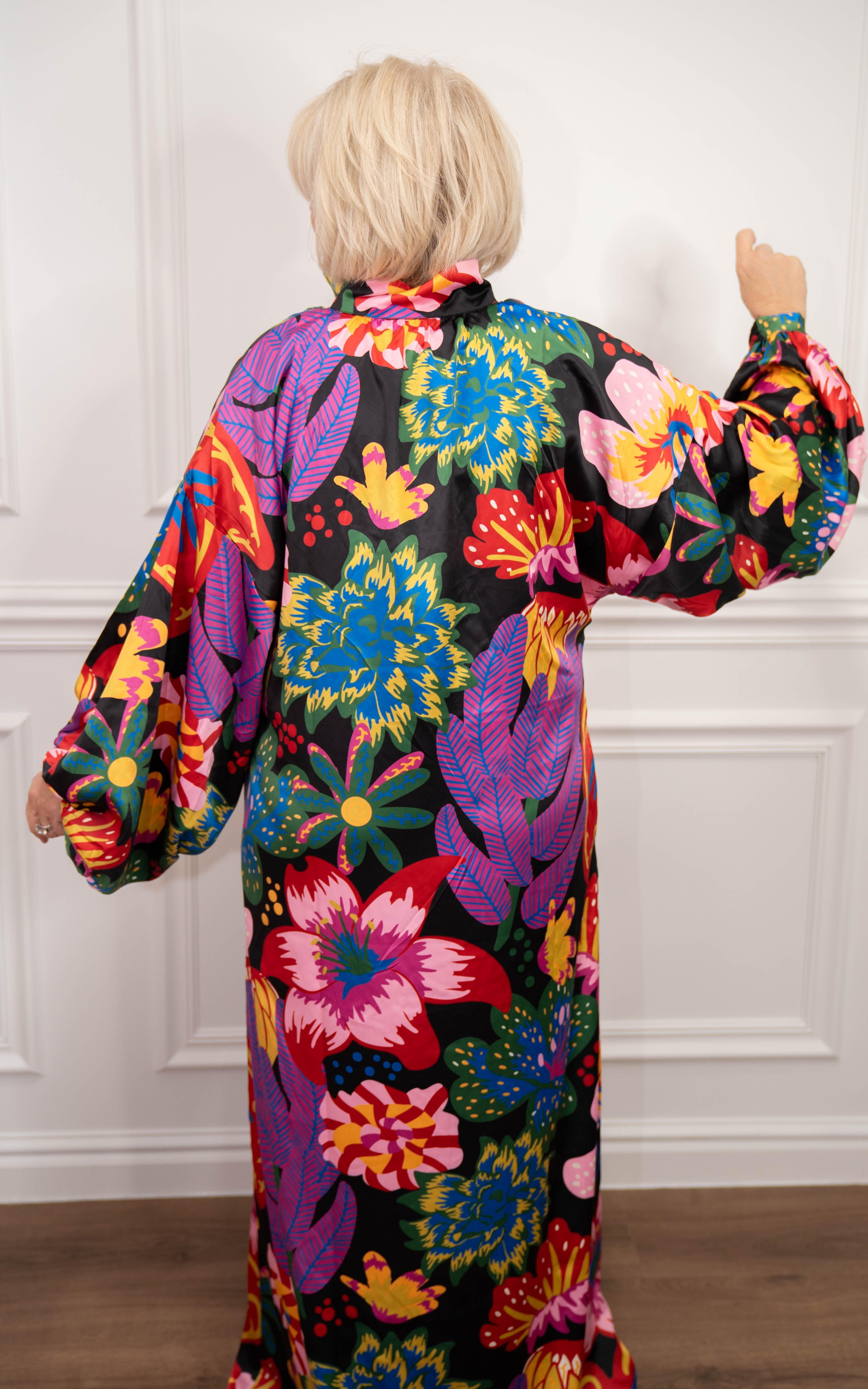 Meet the Emily McCarthy Fiona Caftan in Midnight Garden—your new go-to for effortless glamour. This flowy caftan features a stunning jeweled neckline that catches the light beautifully, transforming a relaxed silhouette into something truly special. Whether you're lounging at home or heading out for an evening adventure, this piece delivers comfort without compromising on style. The perfect blend of laid-back luxury and eye-catching sparkle.