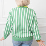 The Queen Lucky Shamrock Sweatshirt brings festive fun to your casual rotation. This striped sweater combines classic comfort with a lucky charm that'll have you smiling every time you pull it on. Perfect for layering through the seasons or wearing solo when you want cozy vibes with personality. Embrace the good luck energy and rock this playful piece with confidence.