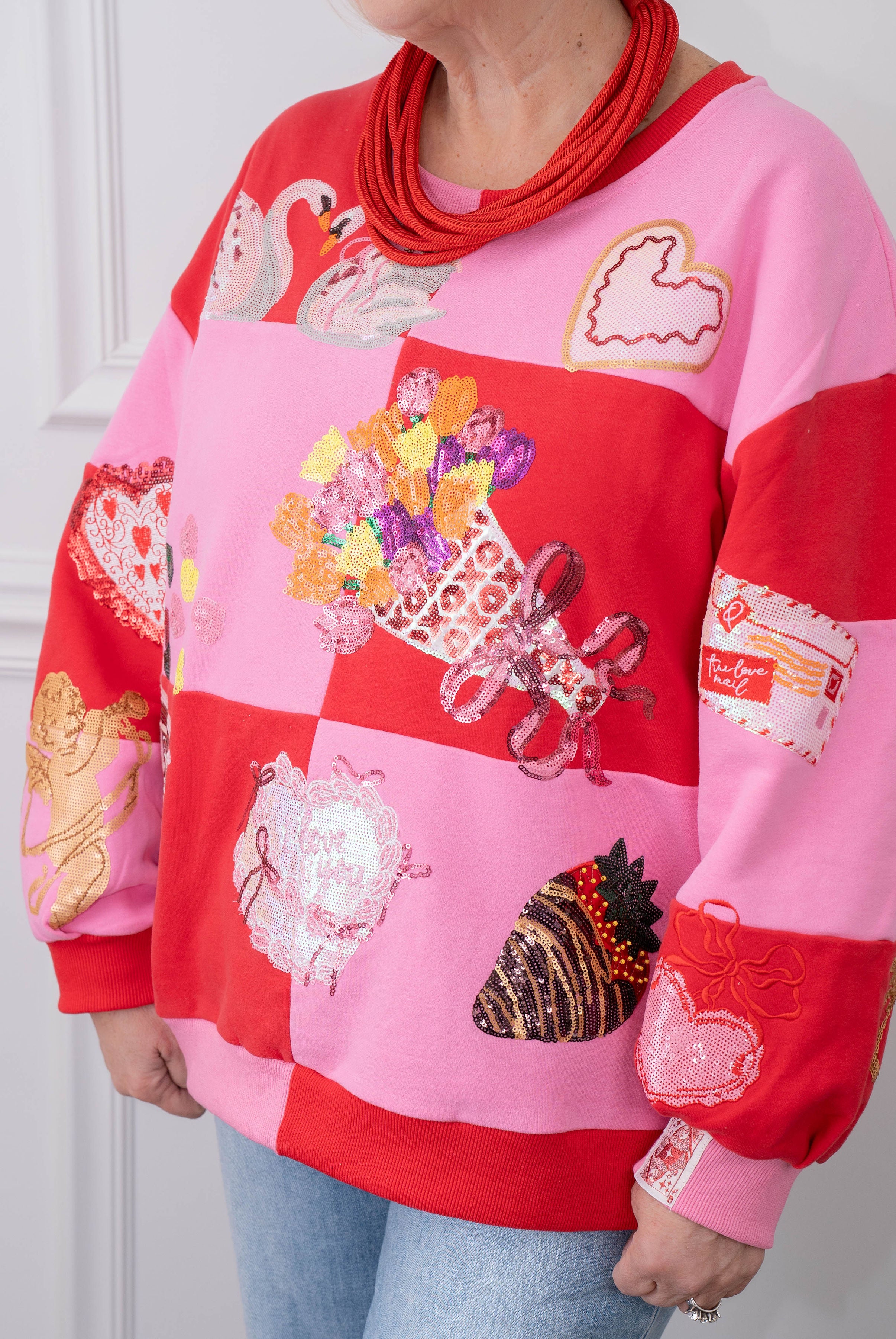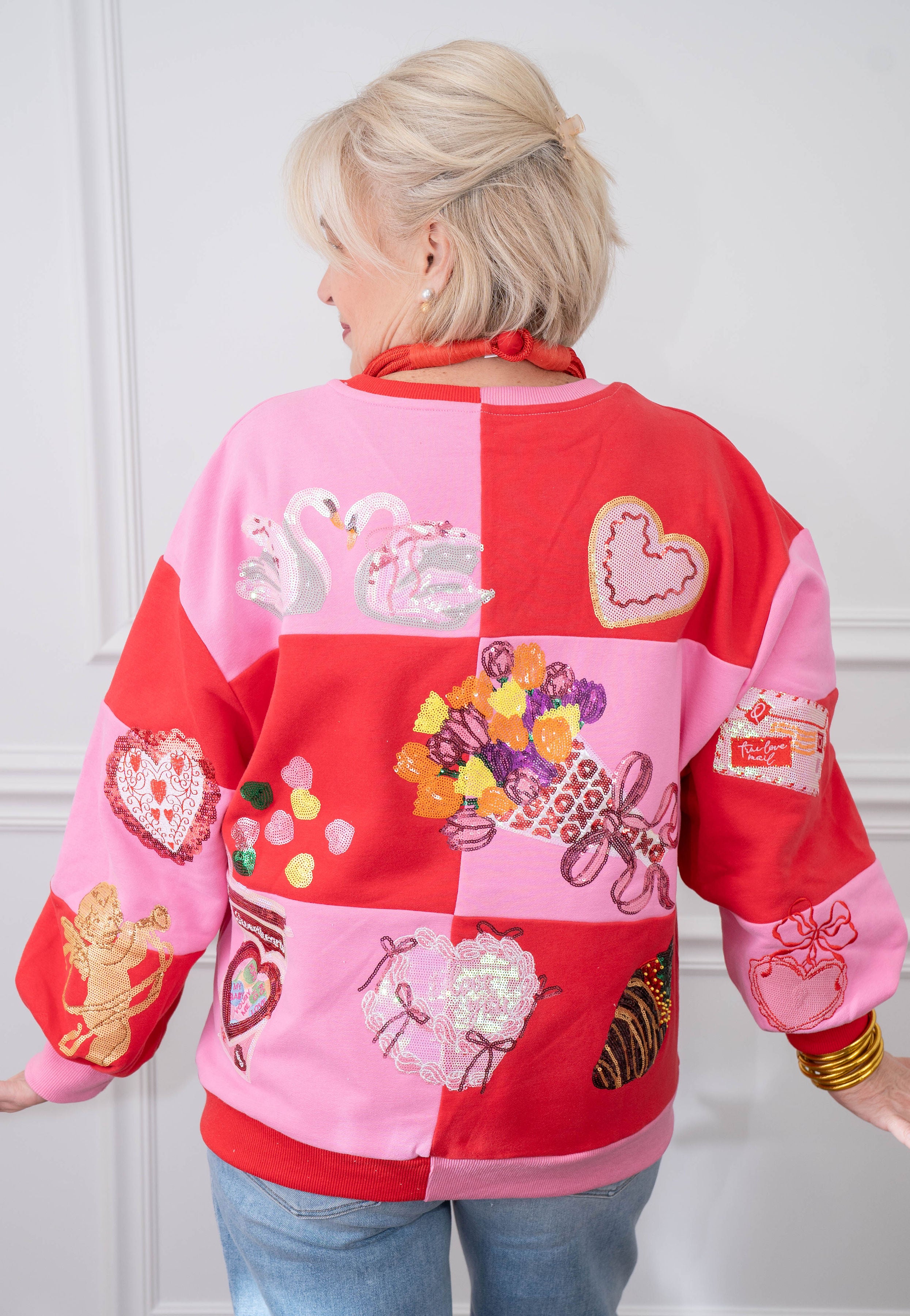 Spread the love this Valentine's Day in our Queen Checkered Icon Sweatshirt! This playful pullover features a bold checkered pattern with a regal queen motif that's perfect for celebrating in style. Cozy, comfortable, and unapologetically fun, it's the ideal way to show your confident, fabulous side. Whether you're treating yourself or gifting a friend, this sweatshirt brings personality and warmth to your seasonal wardrobe.