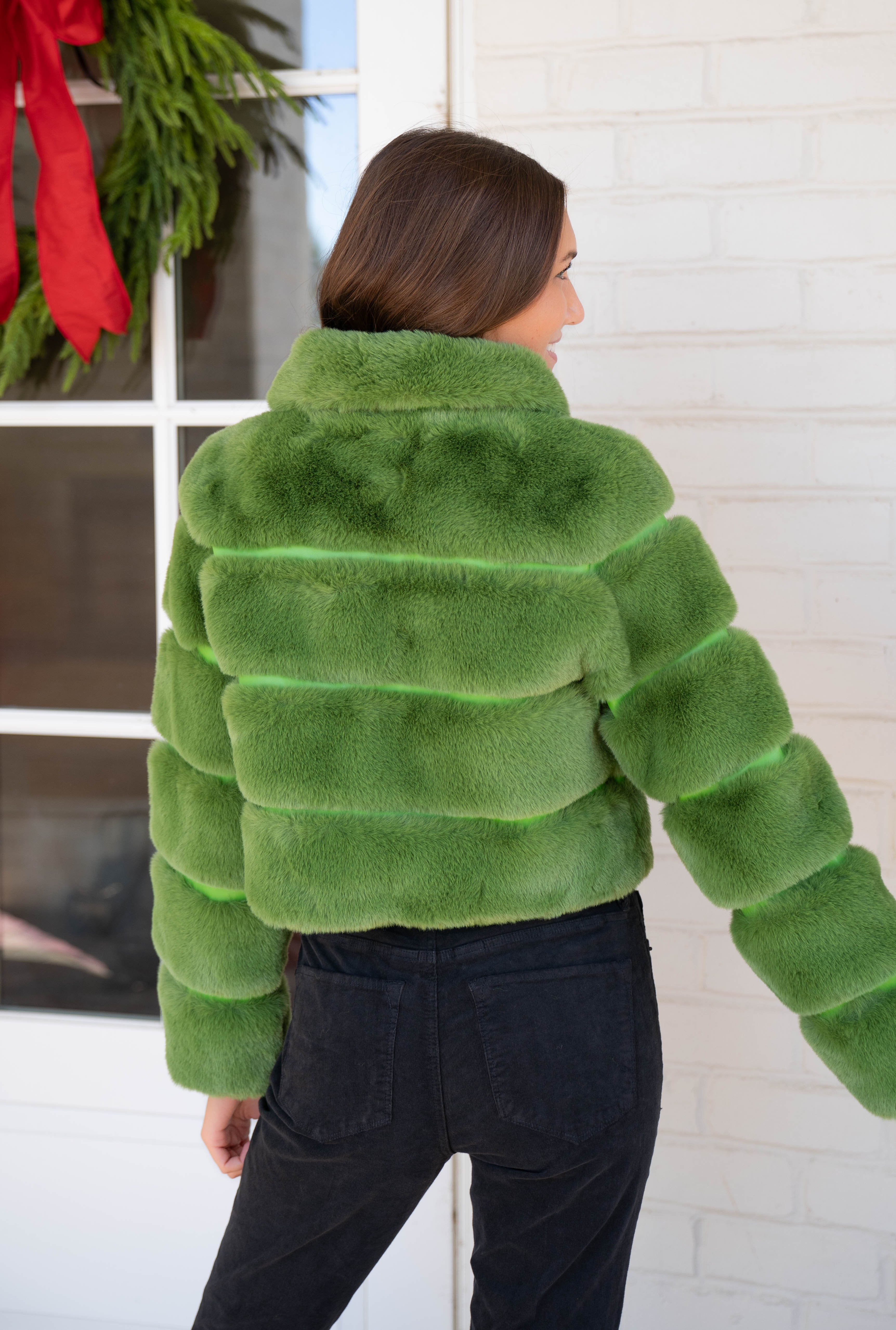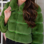 Wrap yourself in luxe comfort with this stunning green fur coat. Perfect for making a bold fashion statement, this piece brings instant glamour to any outfit. The rich, verdant hue pairs beautifully with neutral basics or daring color combinations. Whether you're heading to a special event or elevating your everyday style, this coat delivers cozy sophistication with serious personality. A timeless investment piece that turns heads wherever you go.