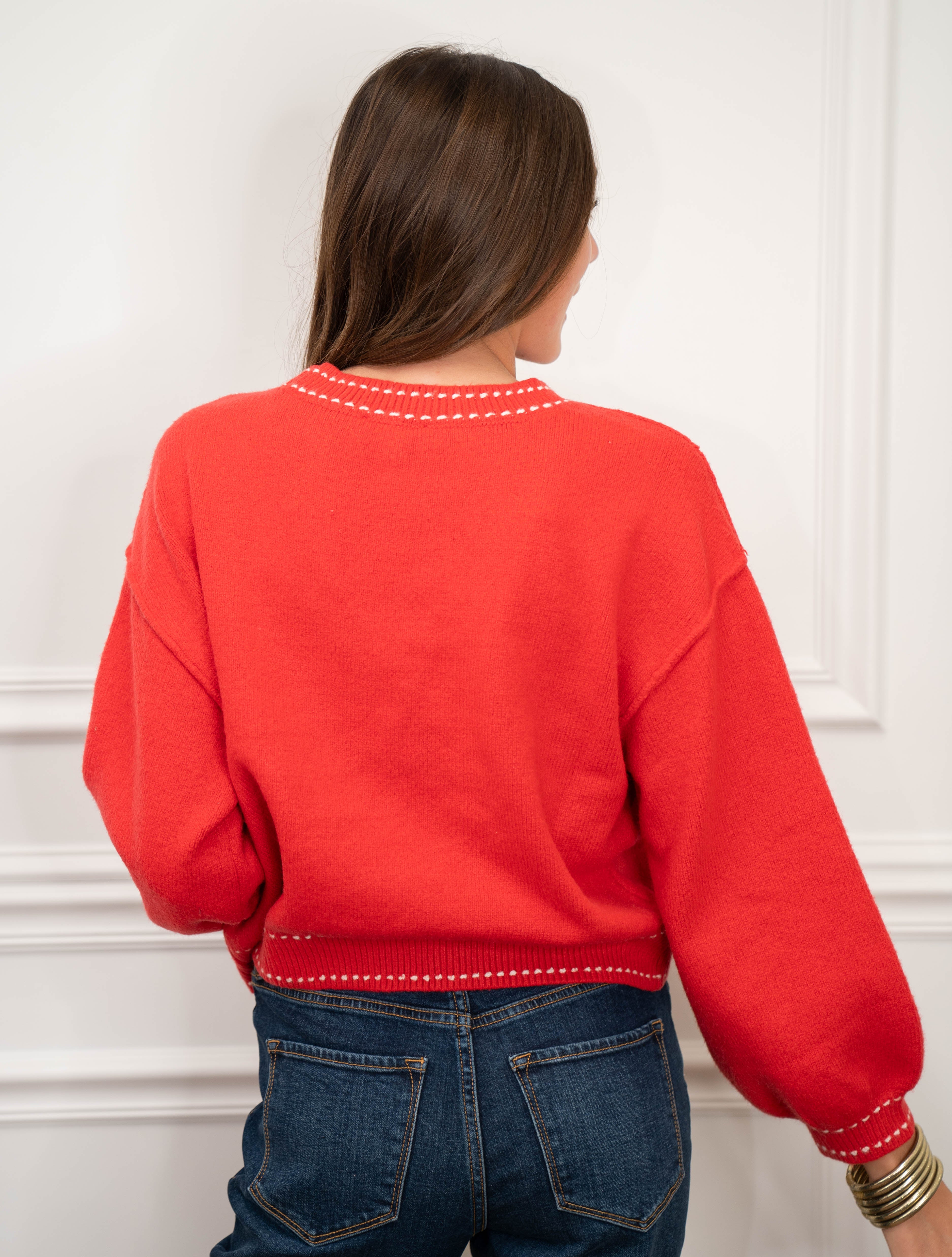 Wrap yourself in holiday cheer with the Jodi Sweater in Red! This vibrant knit is your go-to piece for festive gatherings, cozy nights in, or adding a pop of color to your everyday rotation. The rich red hue pairs effortlessly with neutrals or bold patterns, making it a versatile wardrobe essential. Perfect for spreading seasonal joy—whether you're sipping hot cocoa or dancing at the party.