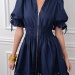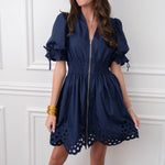 Introducing the Noelle Eyelet Dress—your new go-to for effortless elegance! This charming piece features delicate eyelet detailing that adds a touch of feminine flair, while the gold zippered front makes getting dressed a breeze. Perfect for everything from brunch dates to garden parties, this dress combines playful style with practical sophistication. The eyelet texture brings breathable comfort and visual interest, making it a versatile wardrobe essential that works beautifully on its own or layered with your favorite accessories.