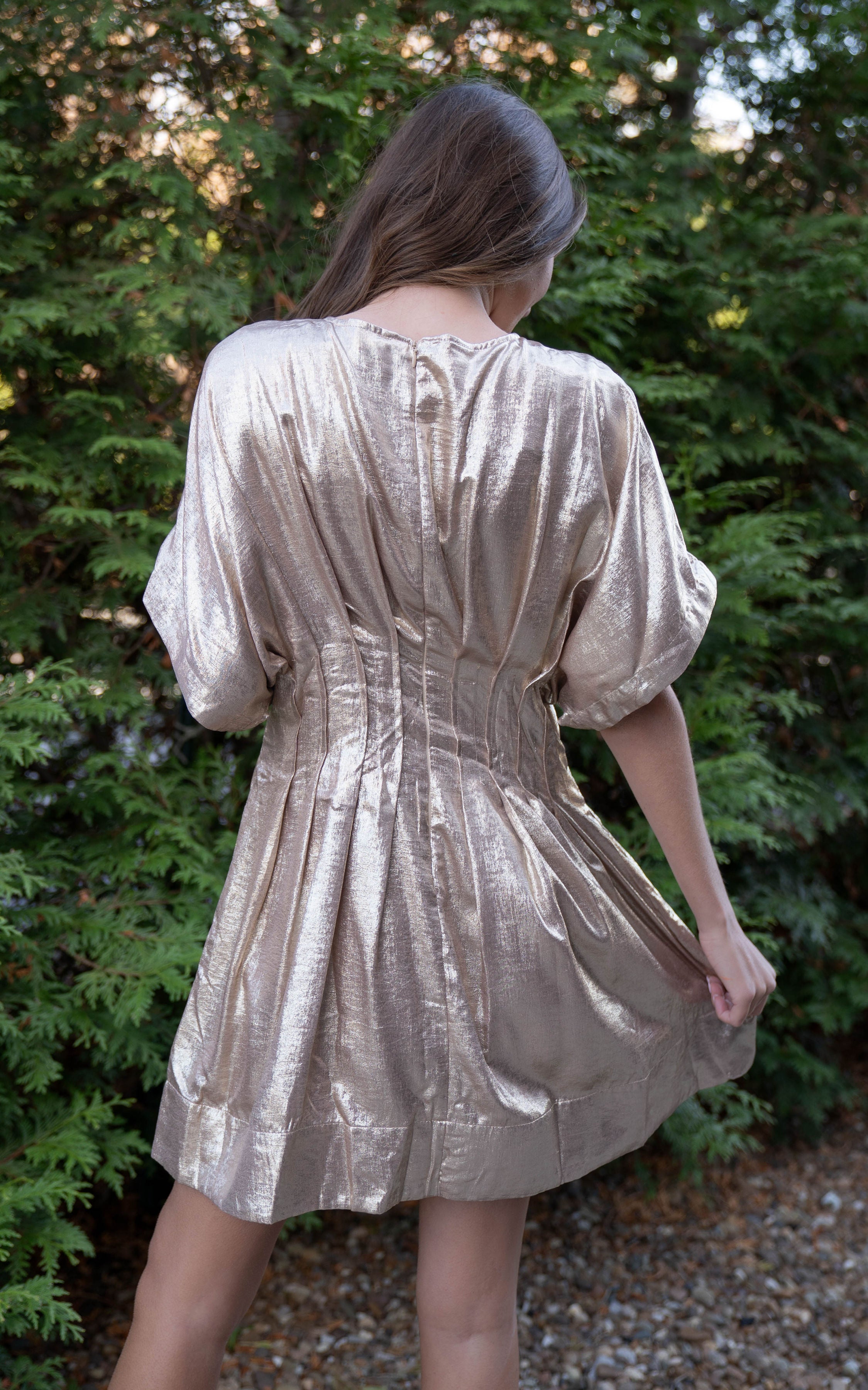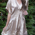Shine bright in the Party All Night Dress—a glamorous stunner that's ready for your best evening! This dazzling dress features a lustrous metallic gold finish that catches the light beautifully, paired with a sophisticated pleated waistline that creates a flattering, dynamic silhouette. Perfect for cocktail parties, celebrations, or whenever you want to feel like the star of the show, this dress delivers instant sparkle and confidence. The pleated detailing adds elegant texture while the metallic gold hue ensures you'll radiate sophistication and fun. Whether you're dancing, mingling, or making a grand entrance, this dress keeps you comfortable and absolutely radiant. Pair with strappy heels and let your natural glow do the rest—you're ready to own the night!