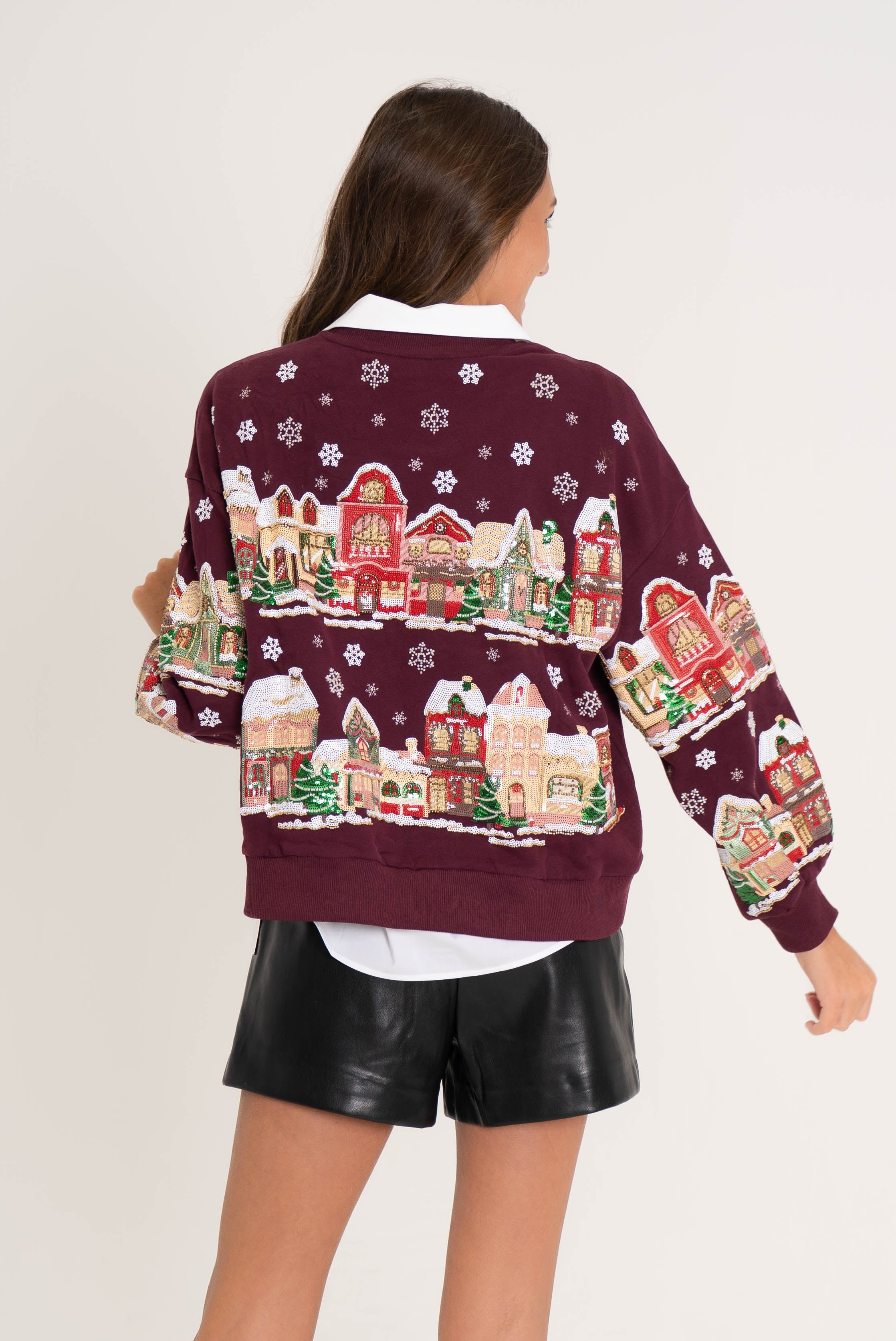 Get ready to sleigh the holiday season in this whimsical Christmas village sweatshirt! Adorned with a snowy, glittering scene straight out of a storybook, this cozy layer brings festive charm to every winter day. Whether you're sipping cocoa by the fire or spreading holiday cheer, this playful piece lets your seasonal spirit shine. Soft, warm, and absolutely magical—your new favorite way to celebrate Christmas.