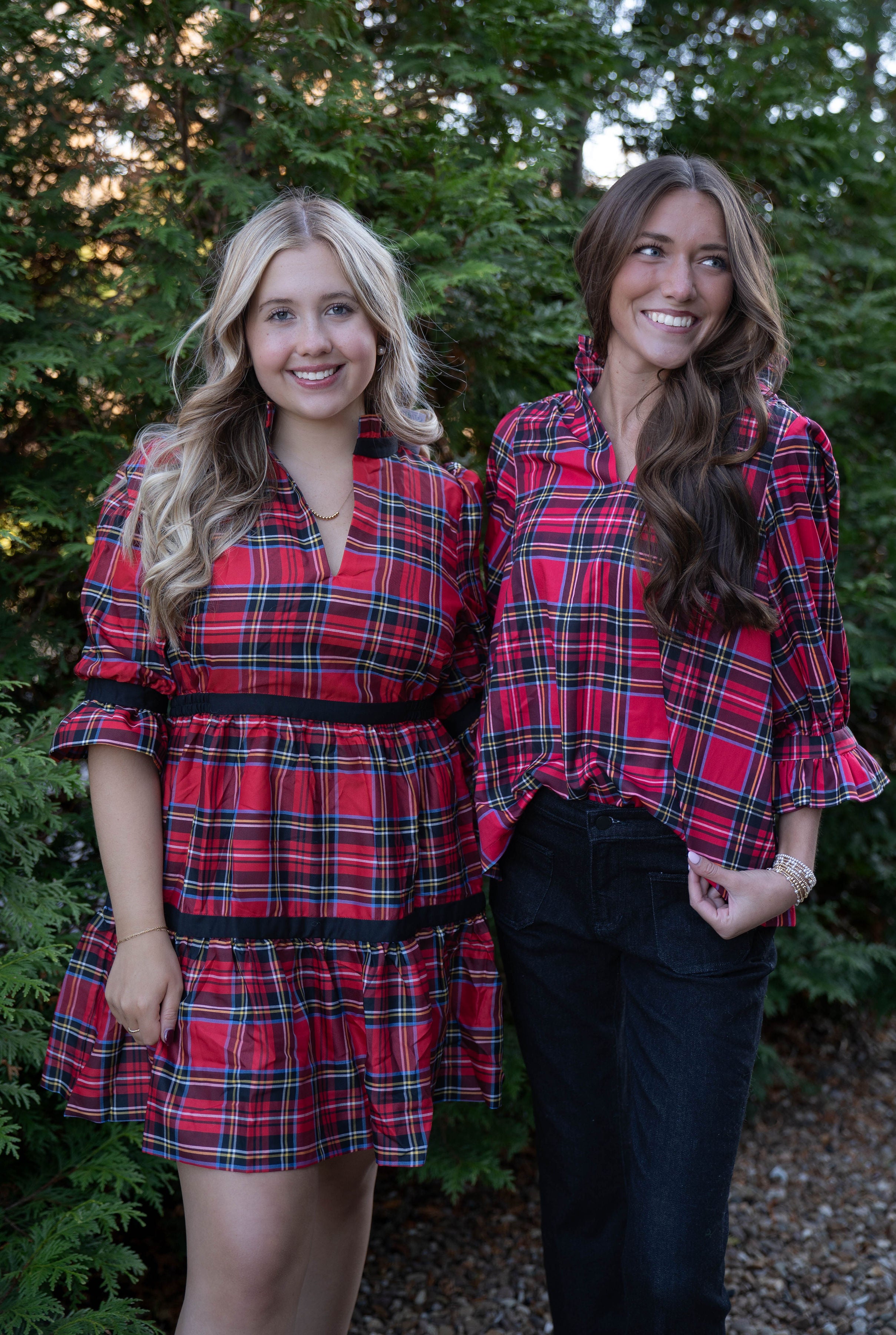 Introducing the Duke of York Dress—a playful take on timeless style! This charming piece features a bold red plaid pattern that commands attention, beautifully balanced with sophisticated black suede trim that adds an unexpected touch of elegance. Perfect for anyone who loves mixing classic prints with modern edge, this dress transitions effortlessly from casual outings to special occasions. The suede detailing elevates the look, making it a versatile wardrobe essential that celebrates individuality with a wink and a smile.